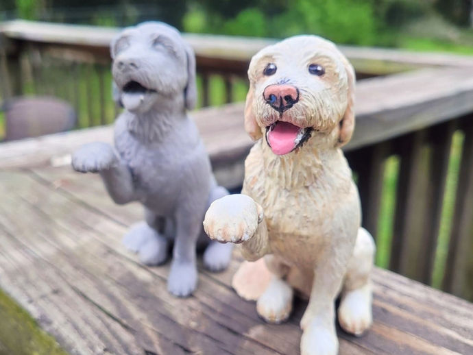 The Malana mold is of a Doodle dog in a sitting position with a paw up for attention and is about "L x "W x "H . Does your pet look like...